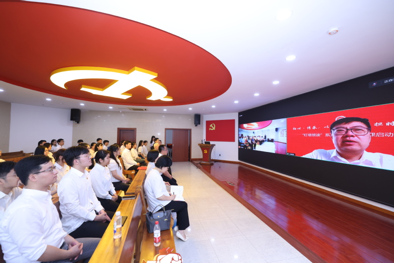 校党委副书记沈海涛通过视频会议方式出席了主题党课,并作了讲话。沈海涛首先代表学校通过朱孔阳校友向为“两弹一星”事业作出突出贡献的华理老前辈表示崇高的敬意。他表示,今天启动的“灯塔领读”活动,就是要引领广大学生党员在学思践悟中学习以“两弹一星”精神为代表的中国共产党人精神谱系,思考共产党员的初心和使命,重温艰苦岁月中的矢志奋斗历程,共话新时代科技报国精神传承。沈海涛在讲话中对与会的全体党员同学们提出了三点希望:一是要深刻认识新时代、新任务,要立足“两个大局”,胸怀“国之大者”,使各项工作更好体现时代性、把握规律性、富于创造性;二是要深刻认识新矛盾、新动力,要充分认识到矛盾的变化,立足自身发展,开辟新赛道,着力形成新优势。三是要在奋斗中实现新担当、体现新作为,要坚定理想信念,听党话、跟党走,要站稳人民立场,强国志、报国行,要坚持脚踏实地,有自信、敢斗争。
